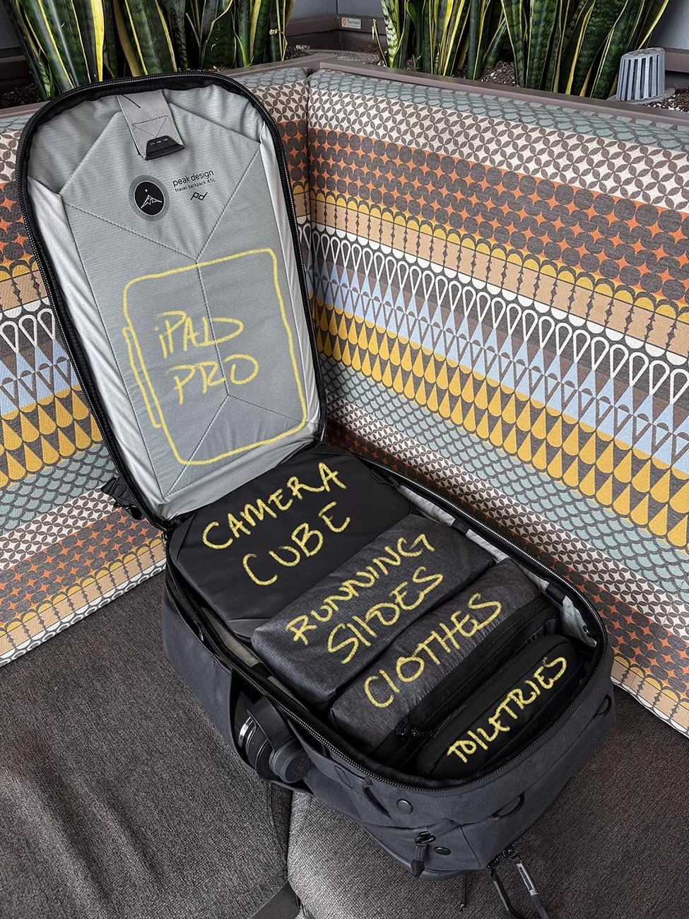 It also helps when paired with their official packing and camera cubes, which are made specifically for the dimensions of the travel backpack